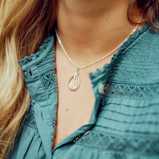 Clear and Bright Birthstone Cross Necklace (Sterling Silver)