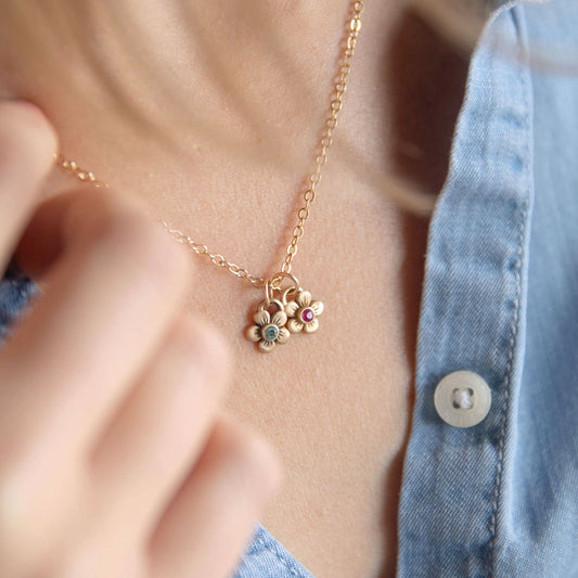 Birthstone Bloom Necklace (14K Solid Gold)
