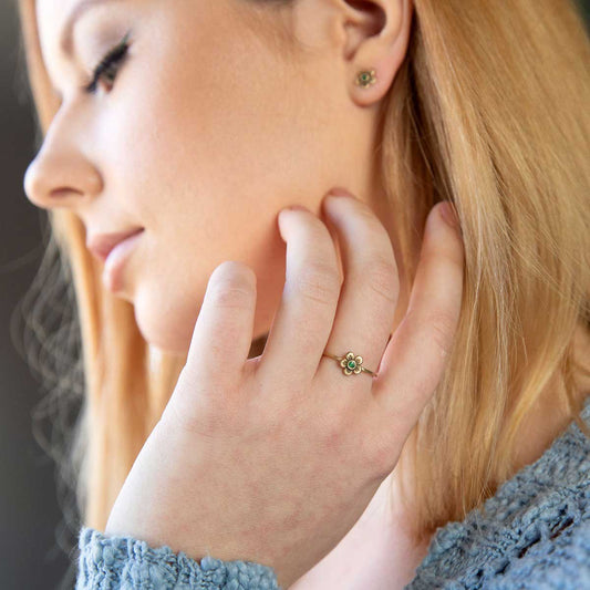 Birthstone Bloom Stud Earrings (14K Solid Gold)