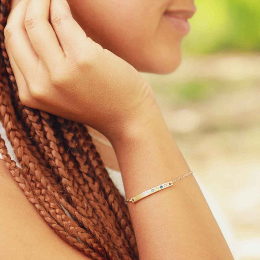 Cross Bar Birthstone Bracelet (14K Solid Gold)