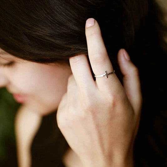 Simple Hammered Cross Ring (Sterling Silver)