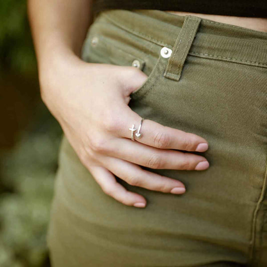 Wrapped in Christ's Love Adjustable Cross Ring (Sterling Silver)