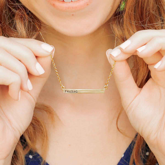 Personalized Cross Bar Necklace (14K Solid Gold)