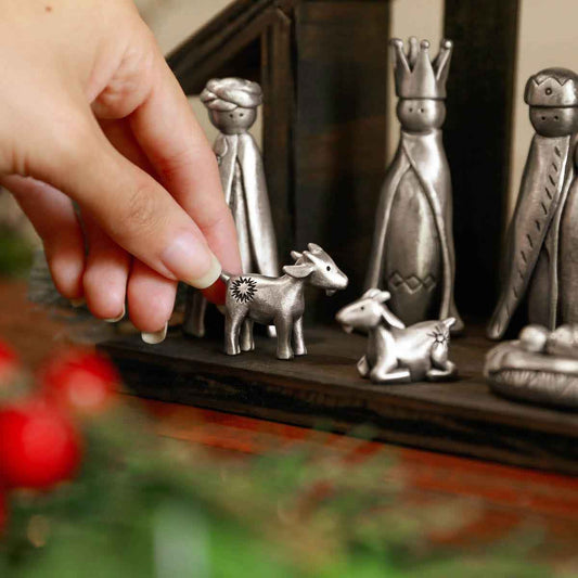 A Pair of Miniature Goats Nativity Figurine Set (Pewter)