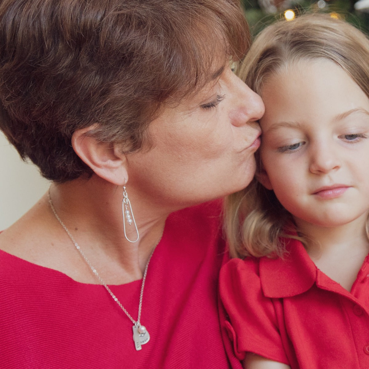 A mother's love is deep and wide, encompassing every part of her life. This adorable pair of earrings is handcrafted in sterling silver with your choice of up to 4 freshwater pearls. They have a matte brushed finish with each earring measuring just under 2" tall and 1/2" wide.