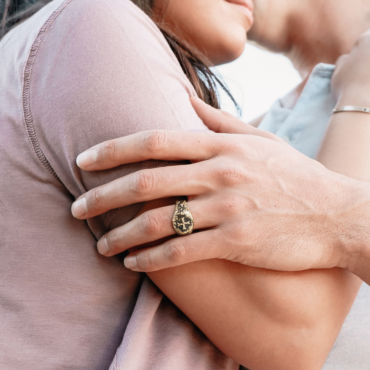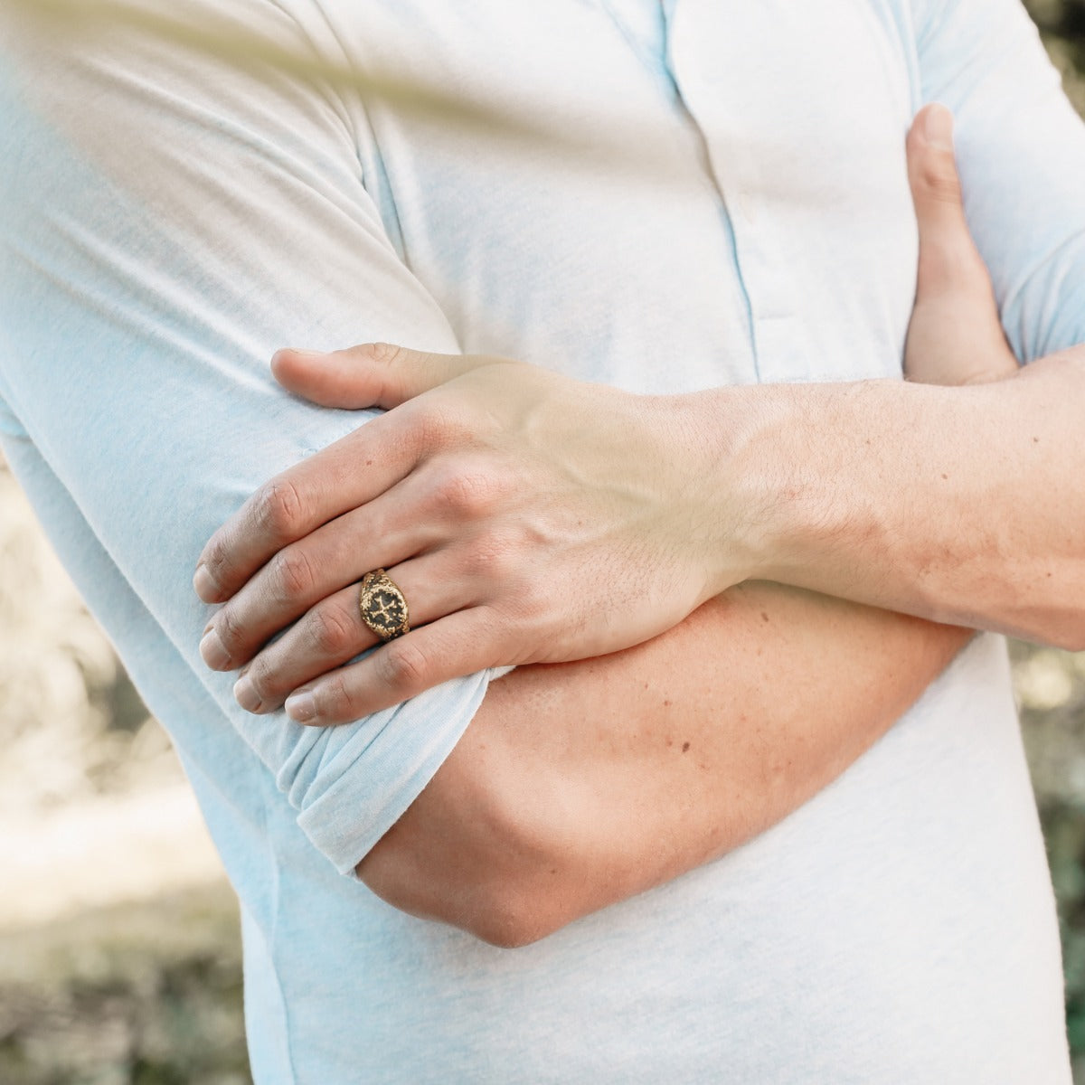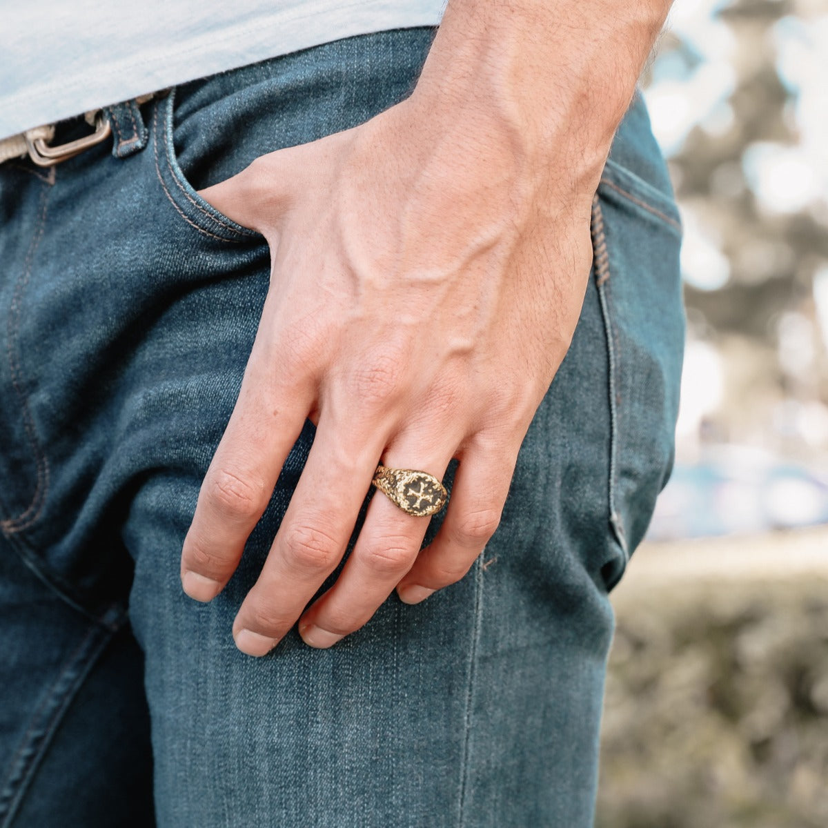 Modeled on a signet ring found in an archeological dig of an ancient Roman site, the Ancient Cross Signet Ring connects you to those of faith over the centuries. With its textured surface and antiqued cross, you know this ring will age well.