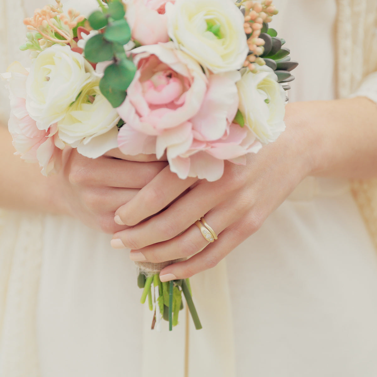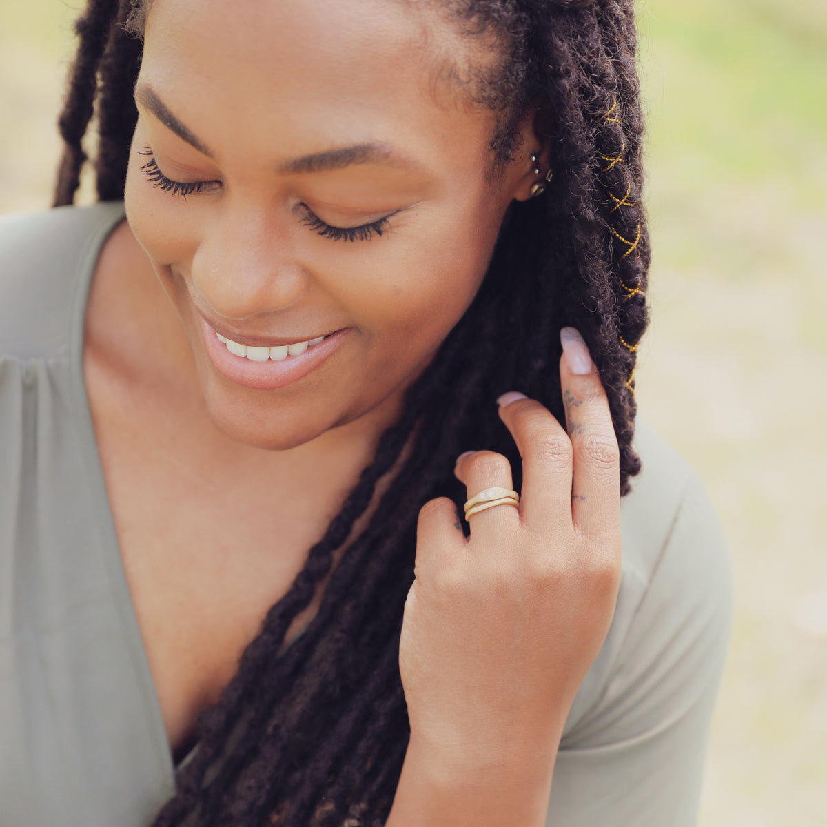 They are designed and handcrafted with thought, care, love, and purpose- just like our story together. This ring pair is hand-molded and cast in 10k yellow gold. The bands measure approximately 2-3mm, with one beautifully set with a 3mm birthstone or a lab grown diamond in the middle and two 2mm stones on each side.