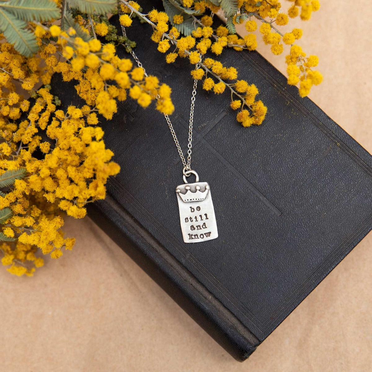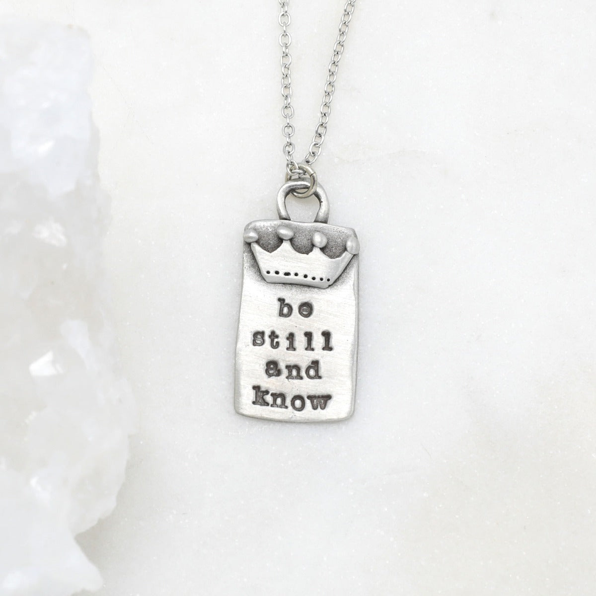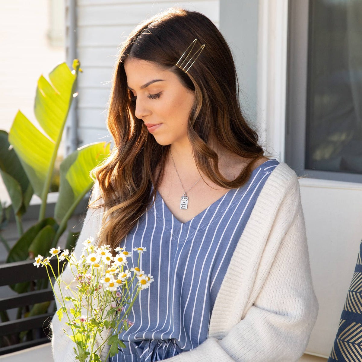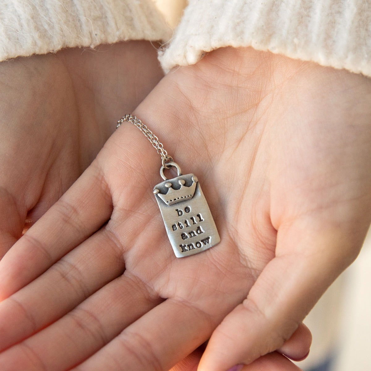 This sweet message is inscribed onto a pewter charm about 1" tall with a matte brushed finish. It hangs close to your heart on an 18" silver-toned link chain.