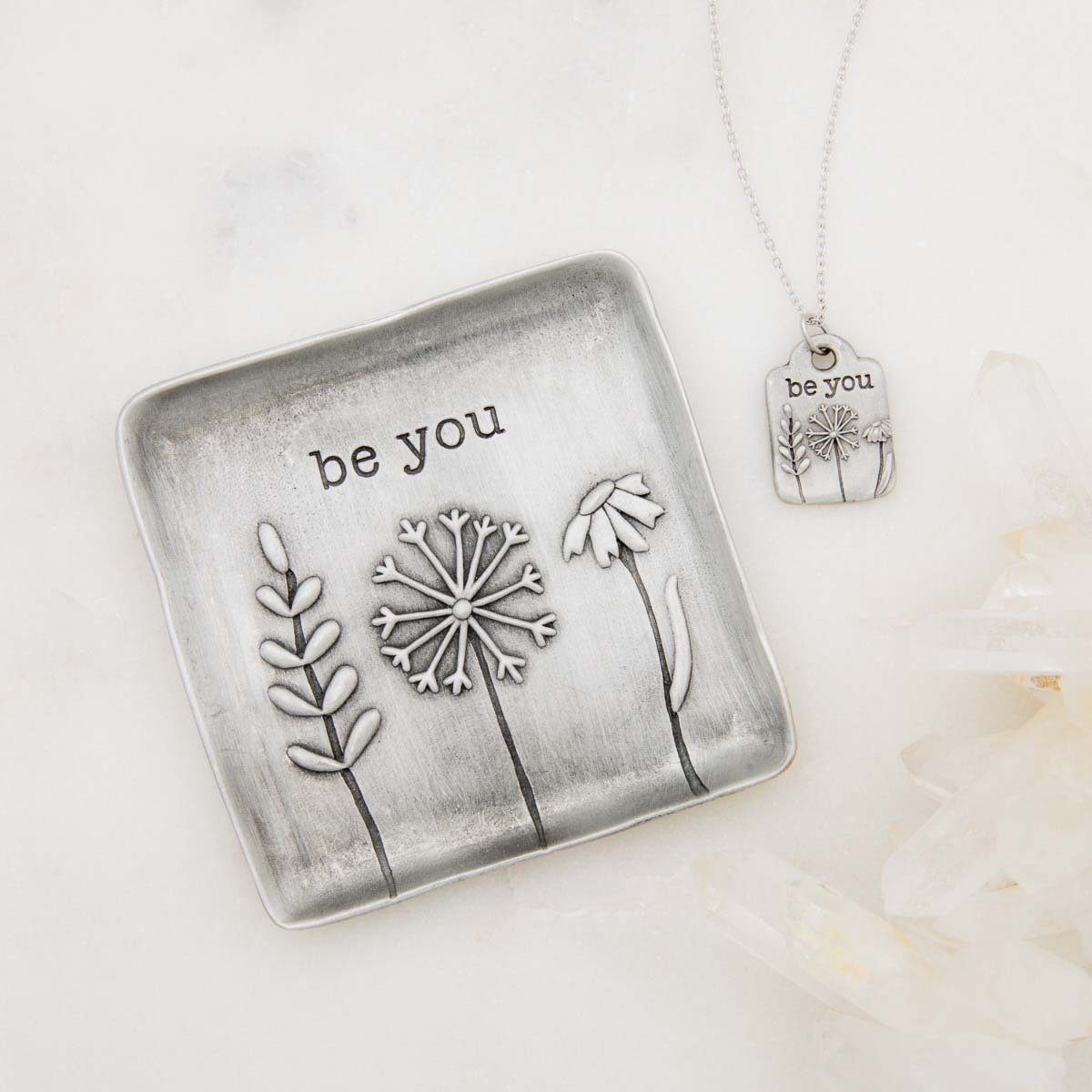 Be You Necklace and Keepsake Dish Gift Bundle (Pewter)