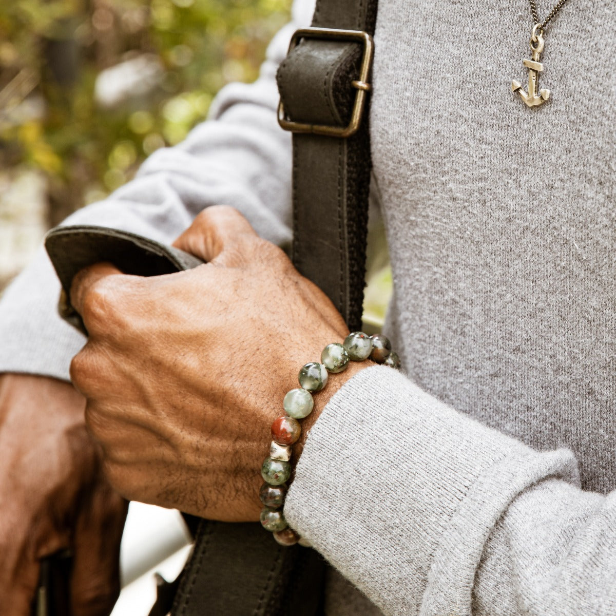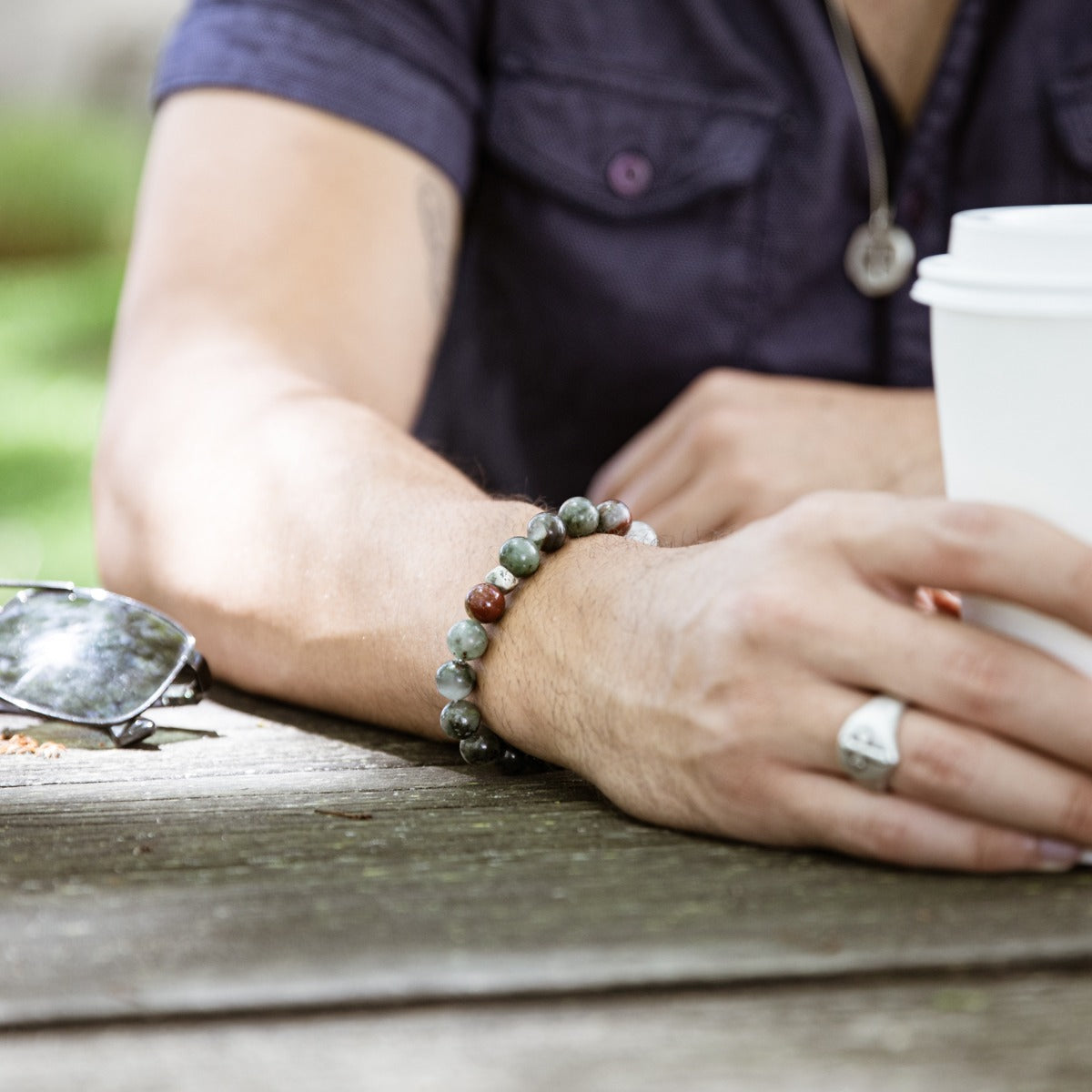 I have found time and again God’s presence to be a true light when all others go out. The genuine Blood Stone, also known as the Sun Stone, represents life and strength. This Blood Stone bracelet can be worn as a daily reminder that as the sun rises everyday, let us be renewed from the strength and light of the sun.