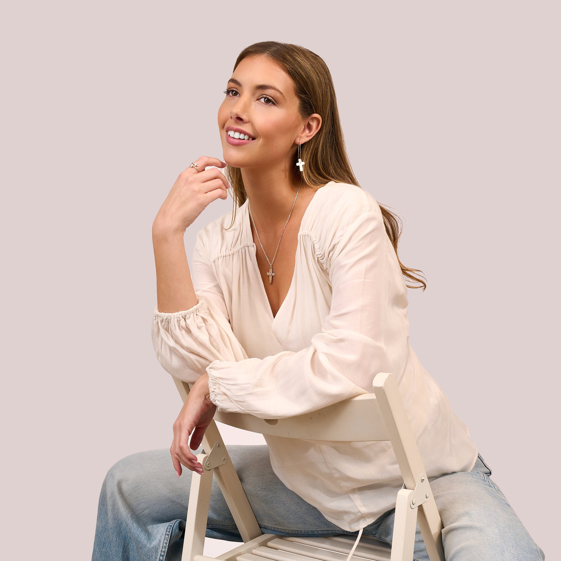 Simple in appearance with perfect style and deep meaning, these cross charms hang from the end of organic drop hoops. Wear your faith and be reminded that the world is not a random, chaotic place. We are safe in the care of the Creator of all things.