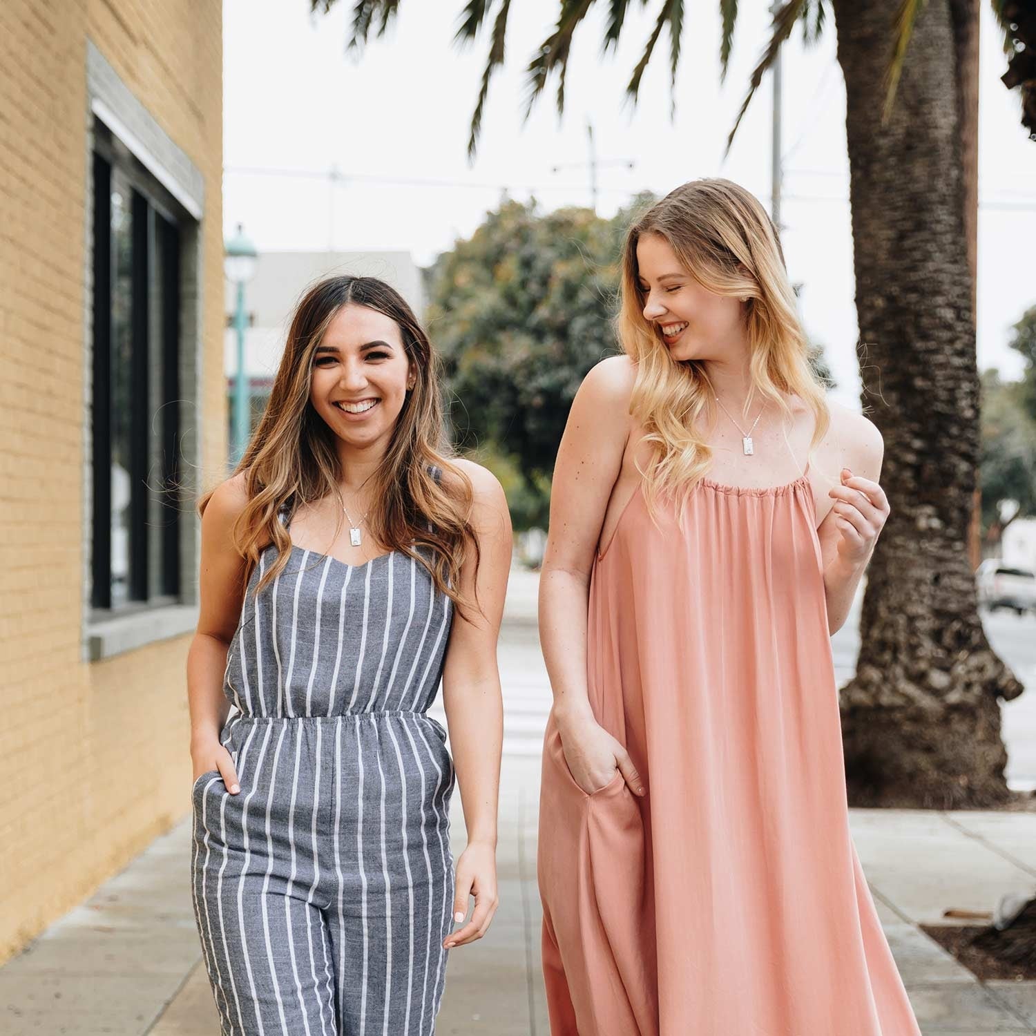 These two adorable necklaces are crafted in sterling silver with a matte brushed finish. Each charm measures approximately 1" tall and 1/2" wide and hang from their own 18" sterling silver chain. Share one with someone you love to keep each other close!