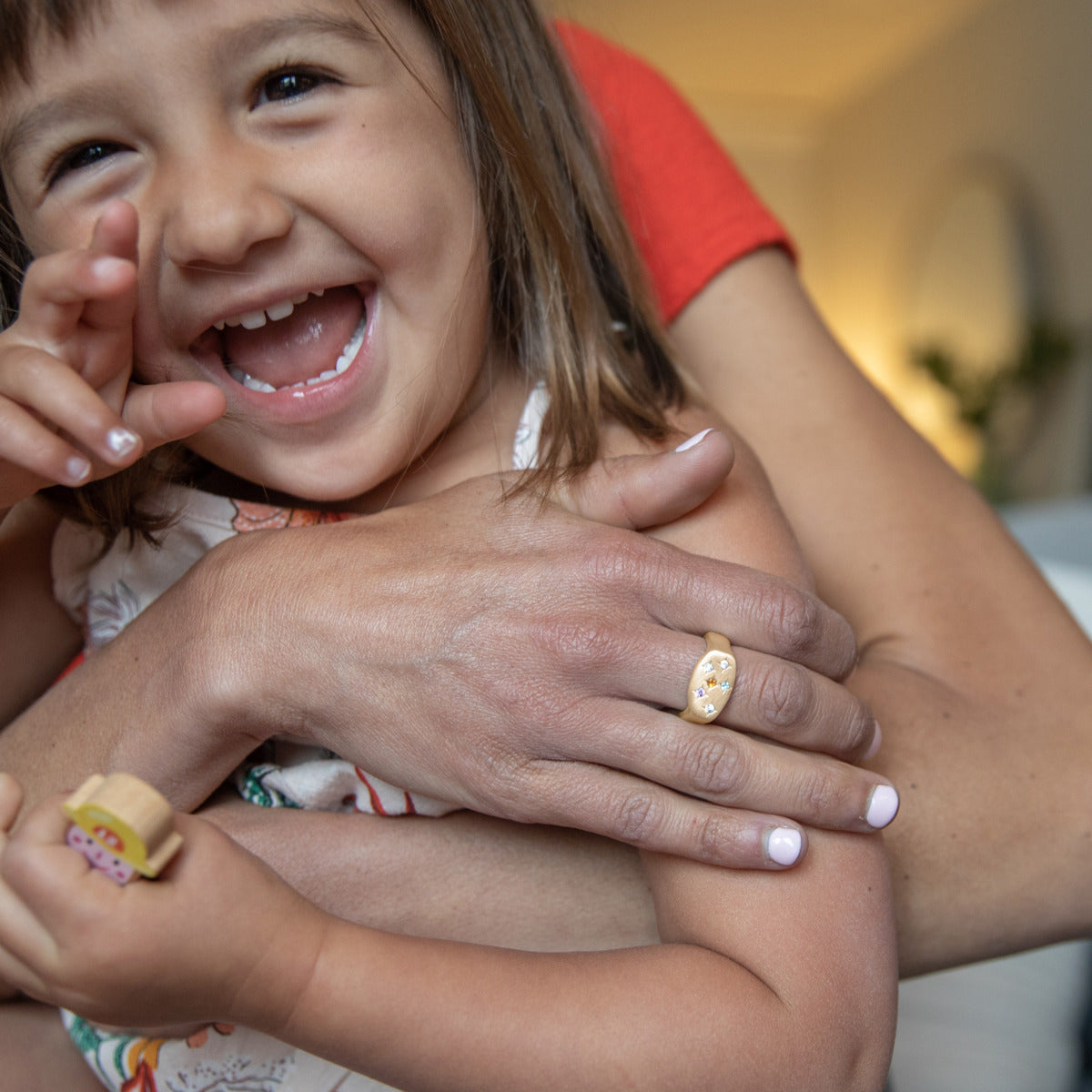 You are a light. You sparkle. You shine. The constellation ring represents your light in the world. The constellation ring begins with 6 crystal gemstones, sparkling like stars in the night sky. Create your own one-of-a-kind ring by replacing crystal gemstones with a colored birthstone for each of your loved ones. Choose one, two, three, four, five or six unique birthstones. We’ll hand set a crystal gemstone in the remaining spots. Your night sky sparkles with color and light. Add a birthstone for each of your loves on your mother's ring. please refer to the labeled image for the correct stone placement.