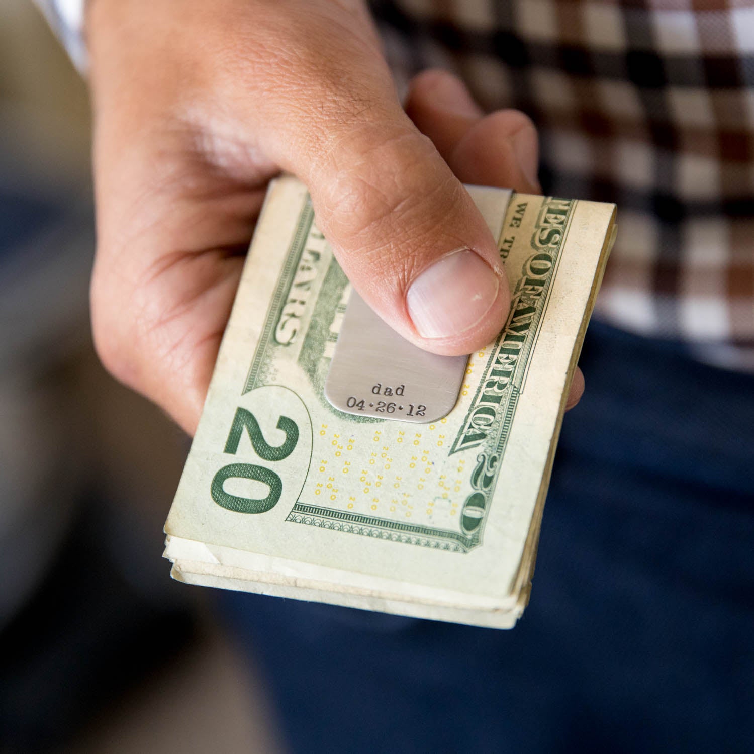 Money clip measures 2x1". As an intentional design decision, we stamp in lowercase letters only.