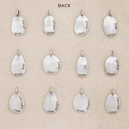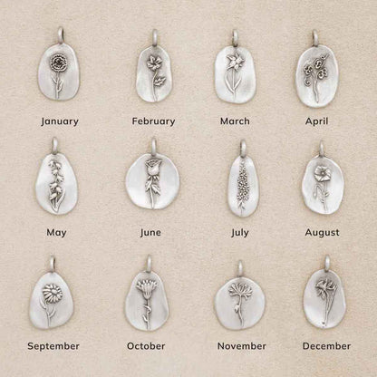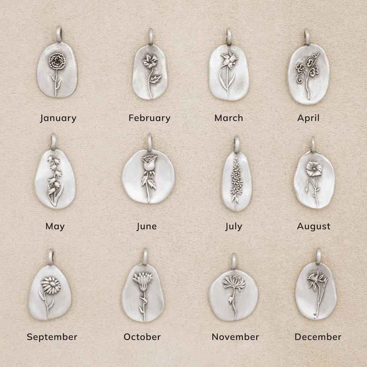 Each charm is handcrafted, cast in pewter, and measures approximately 3/4". Starting price includes a December birth flower charm and 18" silver-toned link chain.