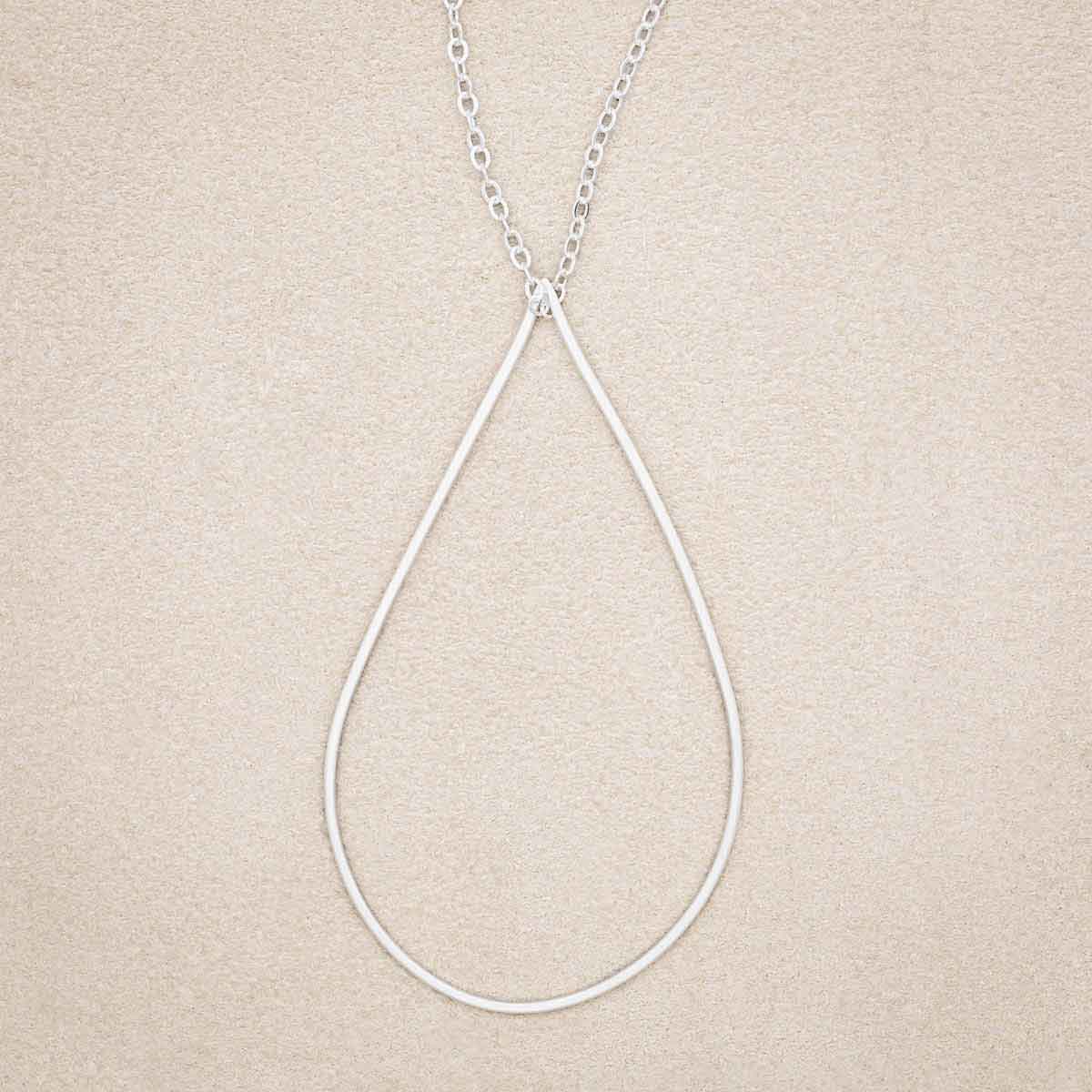 Sterling silver teardrop wire necklace on an 18" link chain, pendant measures 1-1/2" wide x 2-1/2" long.