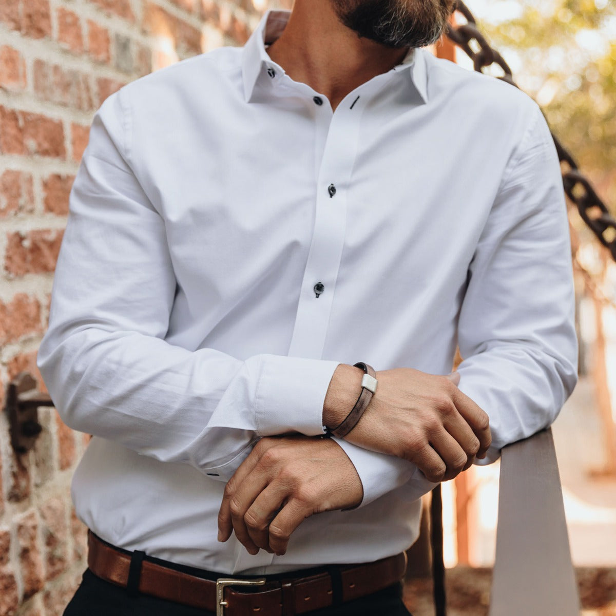 The sterling bead on this leather bracelet keeps its wearer grounded that every person we encounter in the day is more like us than different. This bracelet is handcrafted in brown latigo leather with a sterling silver bead. It measures 10mm wide and has an adjustable length.