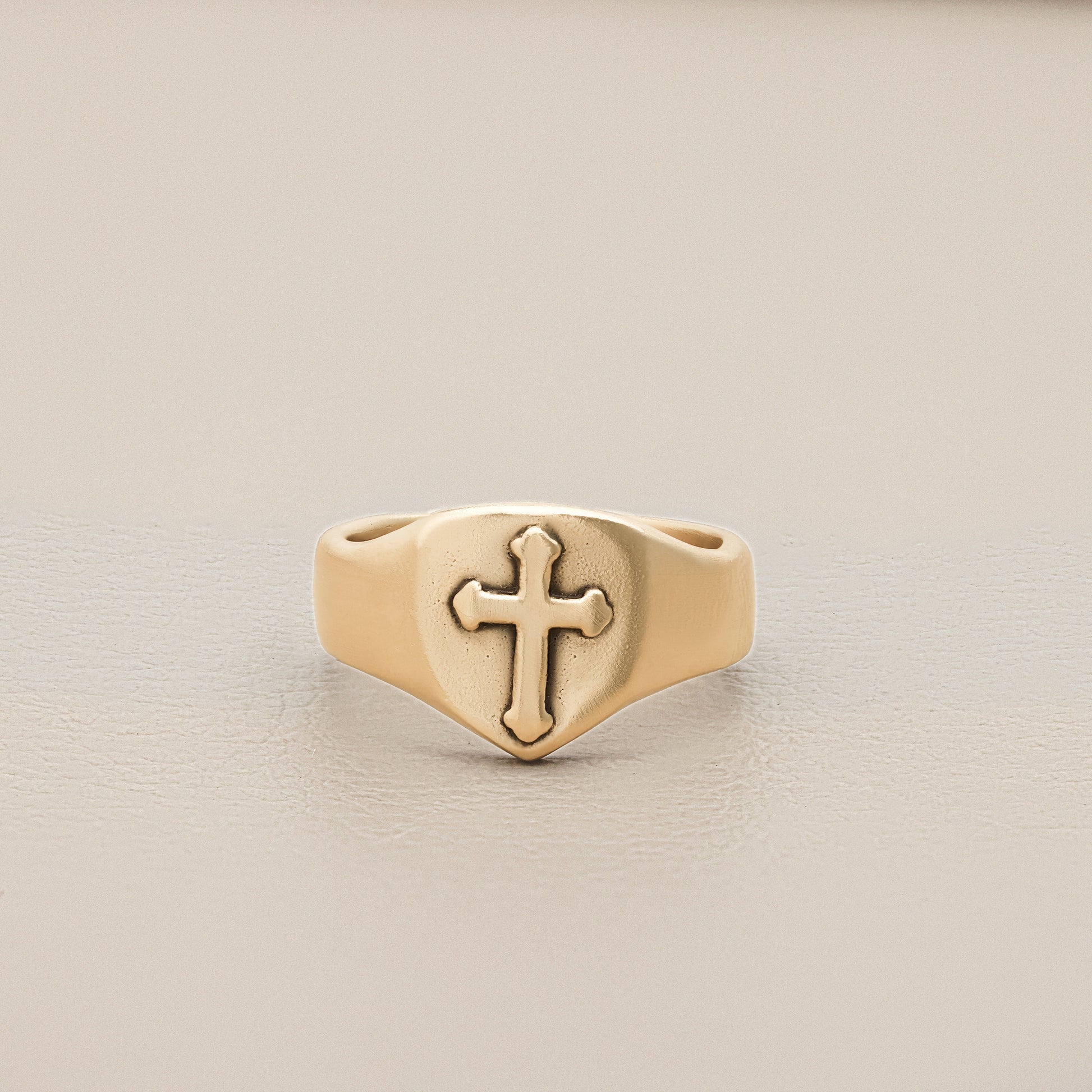 Faith Hope & Love Cross Signet Ring (14K Solid Gold)
