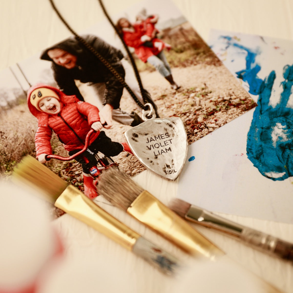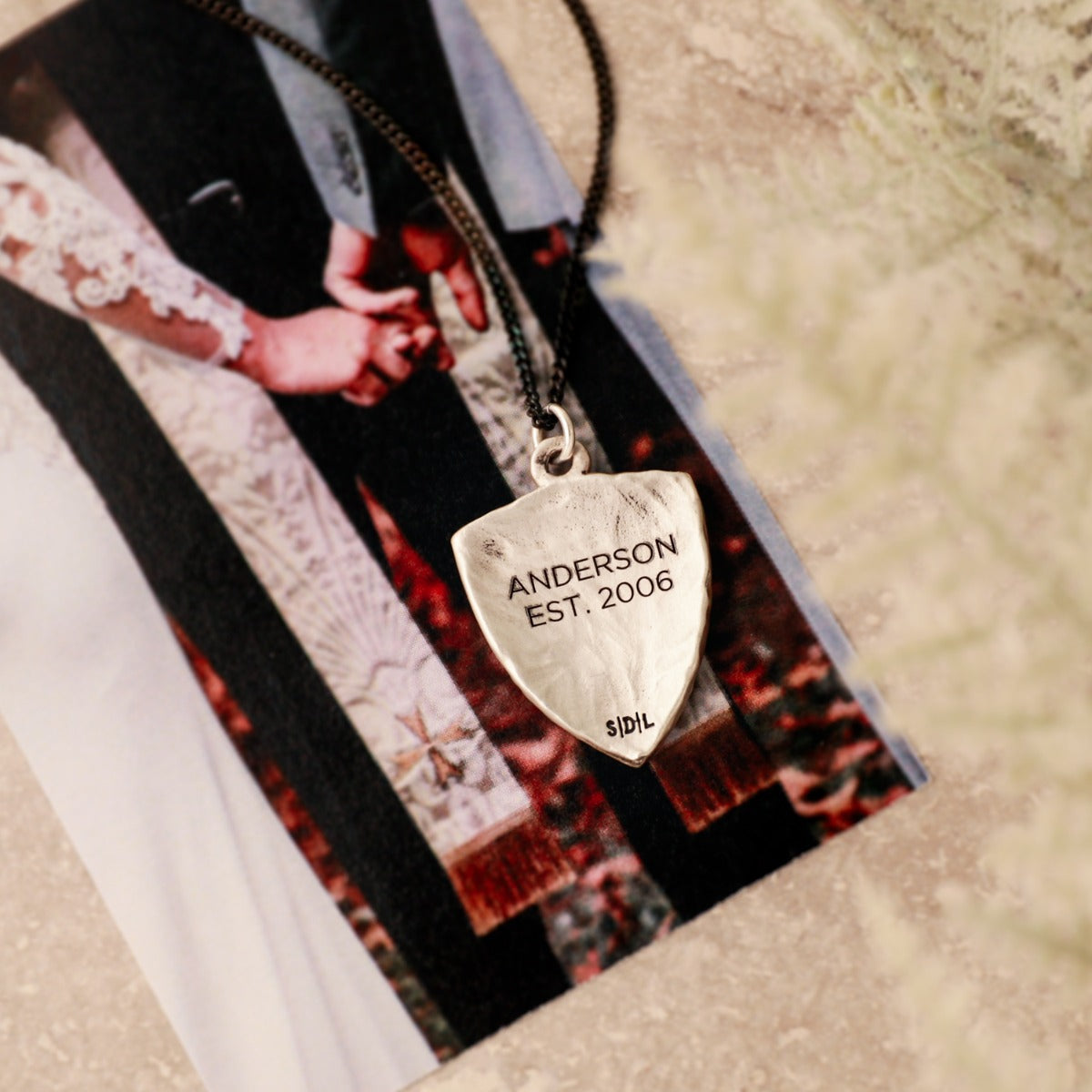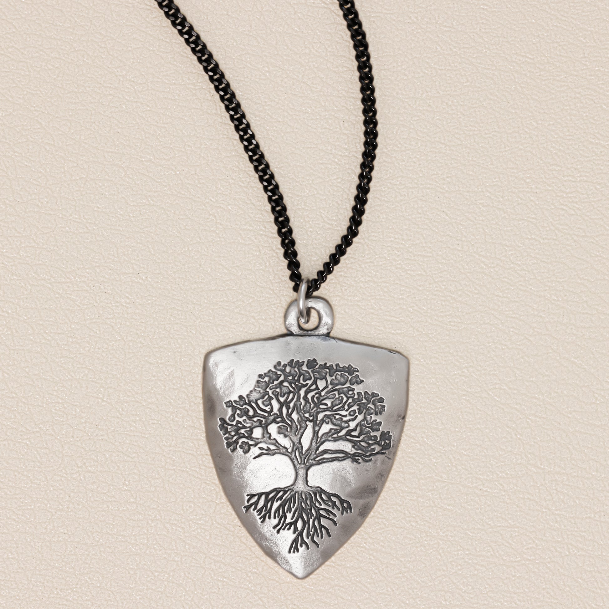 Family Tree Shield Necklace (Antiqued Sterling Silver)