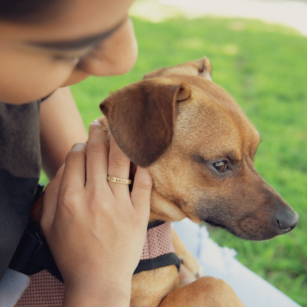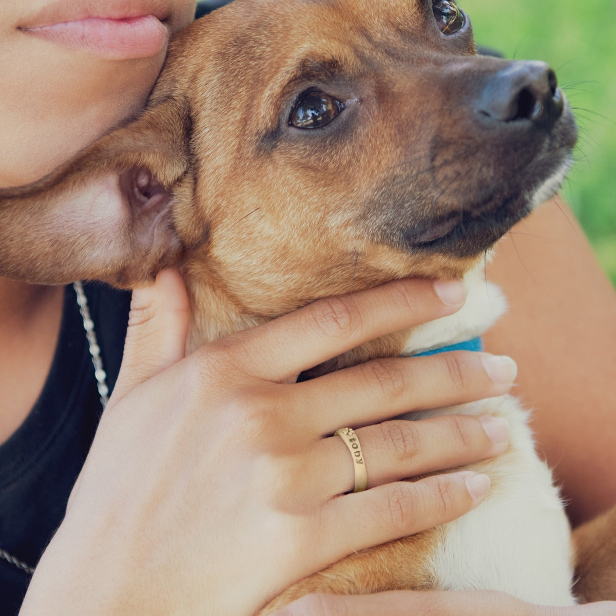 Their love is fierce and loyal. They become part of our heart and soul. The love and companionship our furry friends give us makes every day better! Keep them close with my new furry footprint stacking rings. Your custom piece will be made just for you, exactly as you type it into the field. For dots between names, please use a period.