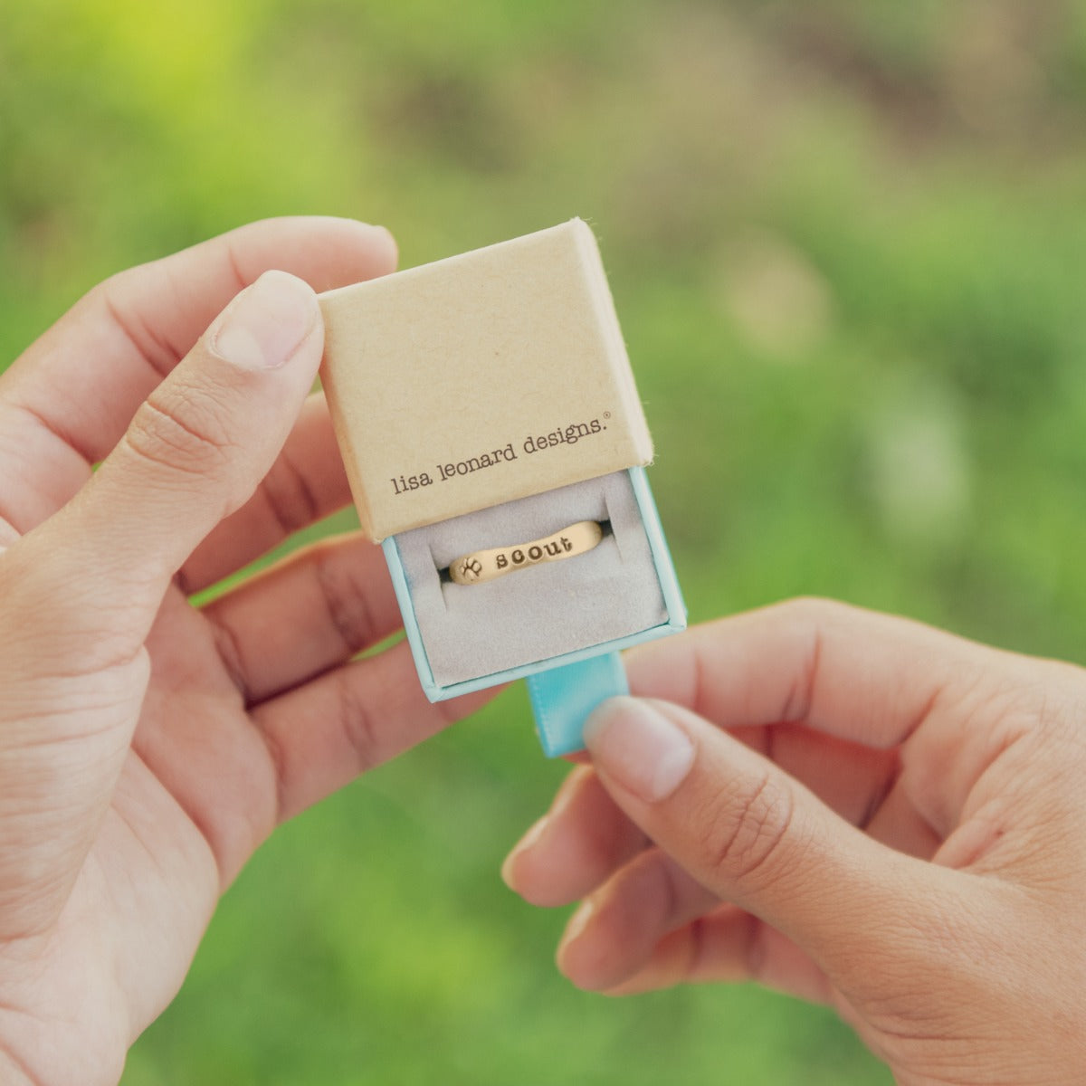Want to learn about our different gold options? Starting price is for one ring. As an intentional design decision, we stamp in lowercase letters only. To specify a heart, please enter <3 into the customization field.