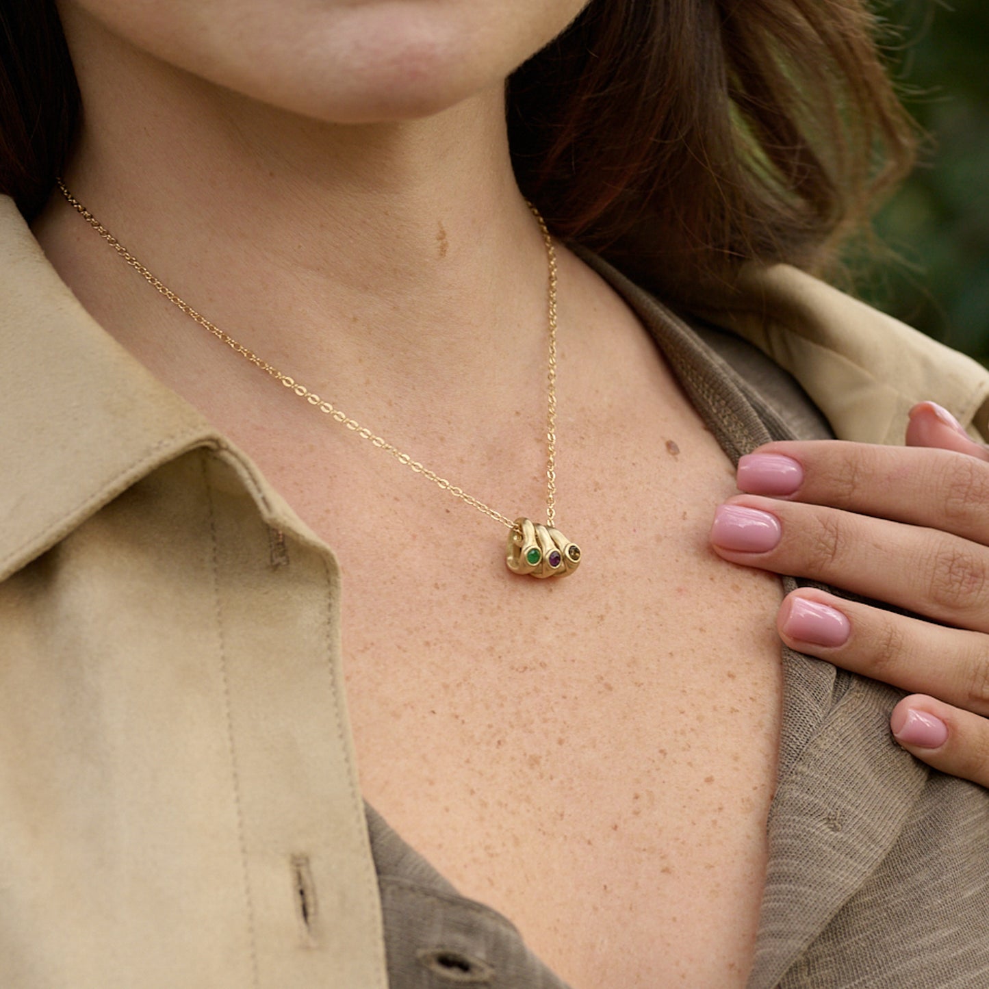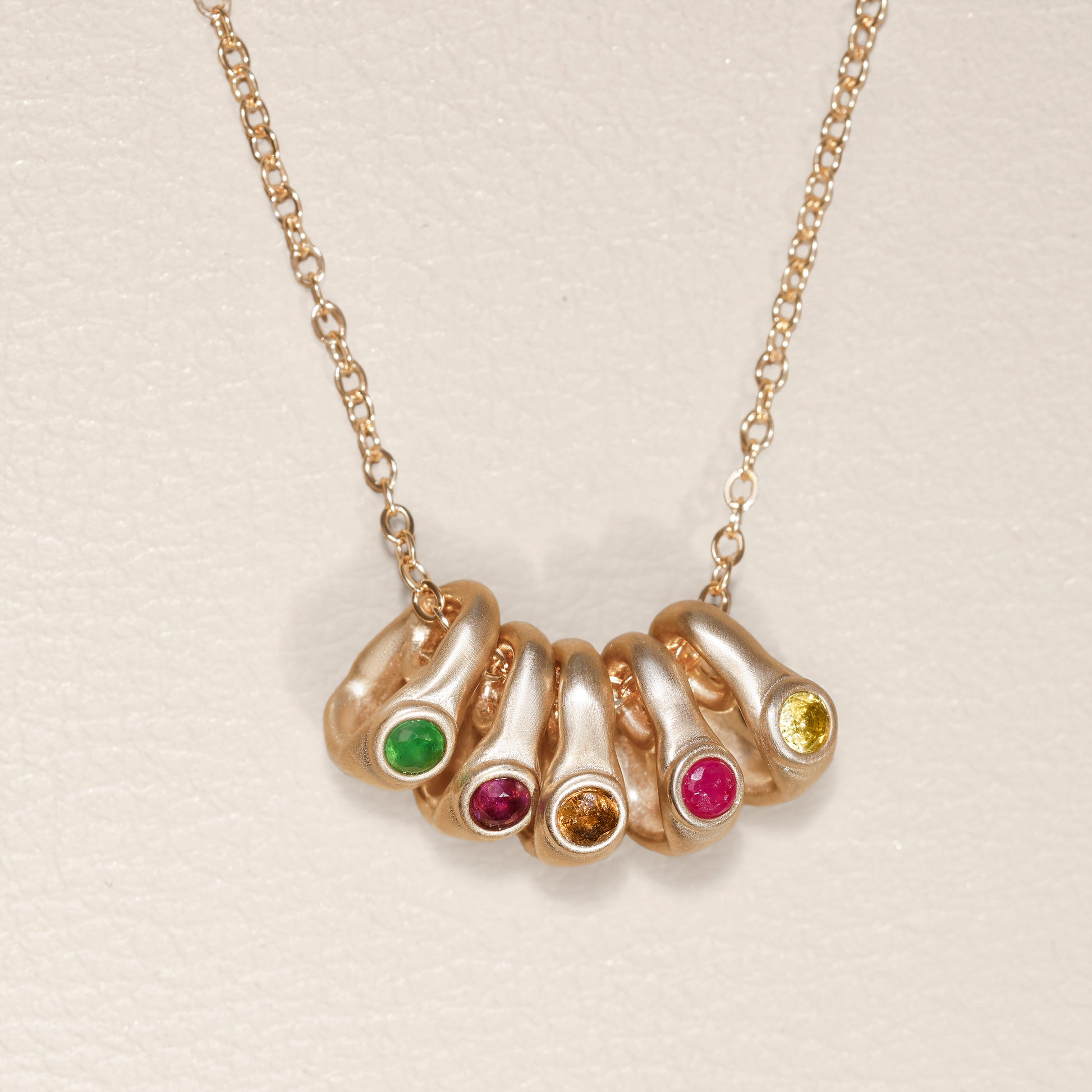 Each charm is cast in sterling silver, plated with gold, and measures approximately 1/2". Choose a genuine 3mm birthstone for each of your loves! The charms hang from a gold-filled link chain.