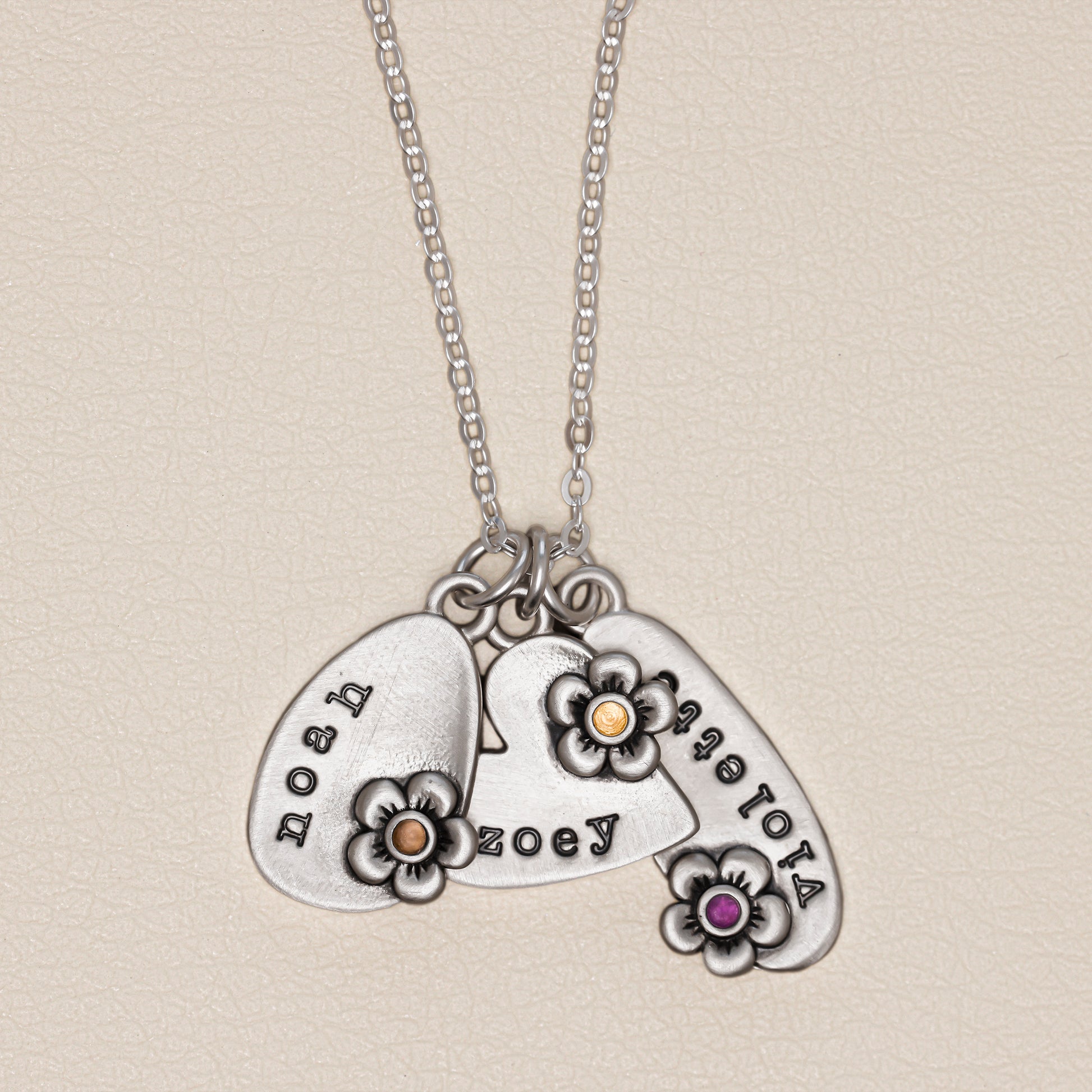 Personalized Birthstone Bloom Jumble Necklace (Sterling Silver)
