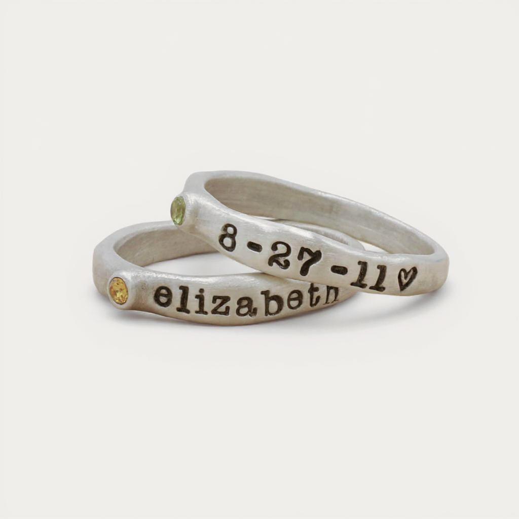 On the day you were born, I held you in my arms and whispered your name. Finally, you were here! We waited and dreamed and hoped and now my arms were holding you--and you were even more amazing than I ever imagined. The Personalized Passage ring holds deep meaning. This ring is a reminder our children are amazing, precious gifts. We'll create a ring just for you, with the name (or date) of your choice and set a birthstone beside it. Stack a ring for each of your loves. This mother's ring can be personalized for all your little loves. Your custom piece will be made just for you, exactly as you type it into the field. For dots between names, please use a period.