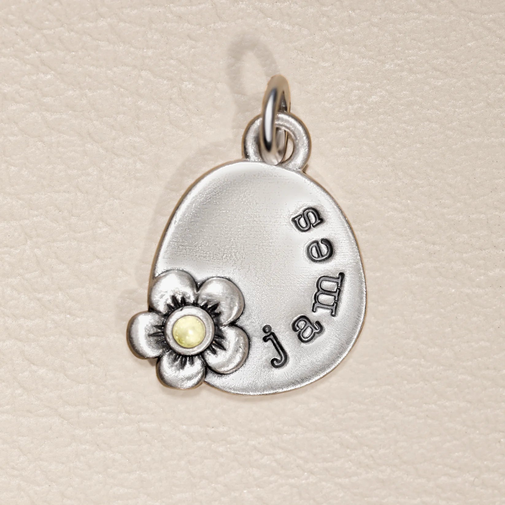 Round Charm With Flower (Sterling Silver)