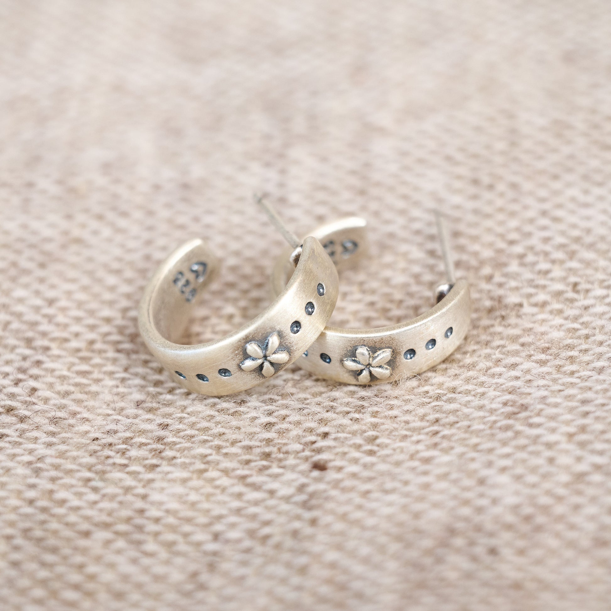 These Spark of Nature Classic Hoop Earrings are hand-cast in sterling silver. Each measures slightly more than 1/2" in diameter, with 9 mm earring posts.