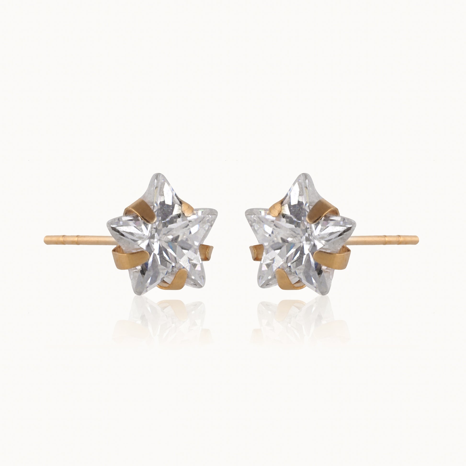These shining beauties are hand-cast in 10k yellow gold. Each crystal star measures 5mm.