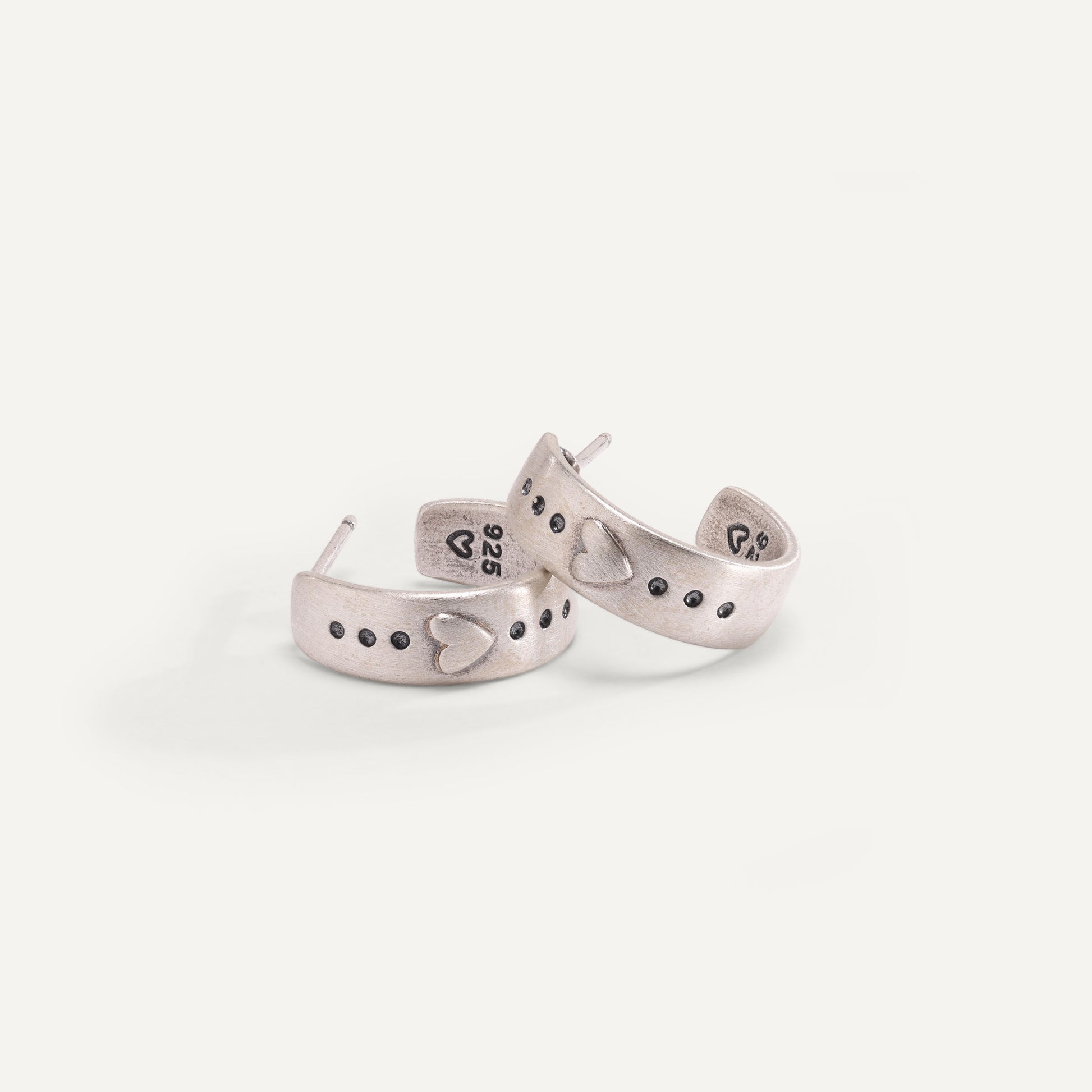 These Spark of Love Classic Hoop Earrings are hand-cast in sterling silver. Each measures slightly more than 1/2" in diameter, with 9 mm earring posts.