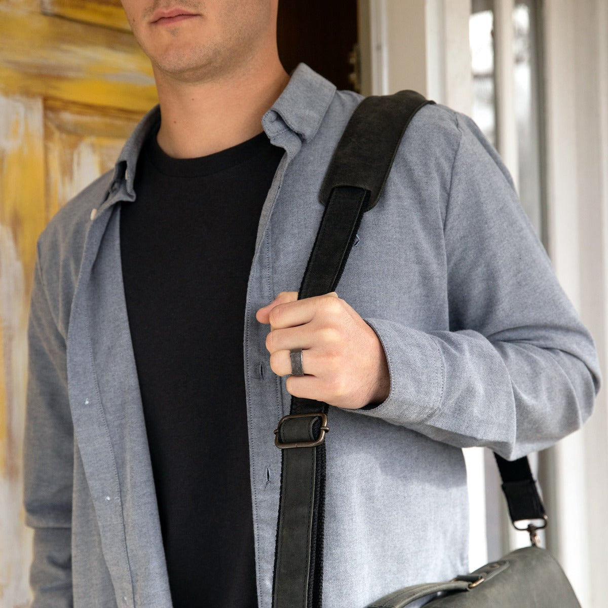 Faithfulness in today's world demands we live Strong + True lives at home, at work and even at play. The four squared sides of this ring represent willingness to live with integrity. The ring is handcarved with rivets in each corner showing the strength a true life requires. Hammered finish for an artisan feel.