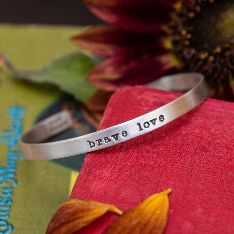 This sterling silver piece is a gorgeous, easy piece that slips onto your wrist. The cuff can accommodate up to 30 characters, so it's great for a longer phrase or a bunch of names. Cuff measures 6" long / 2.5" diameter / approx. 1" opening / available in one size. As an intentional design decision, we stamp in lowercase letters only. To specify a heart, please enter <3 into the customization field.