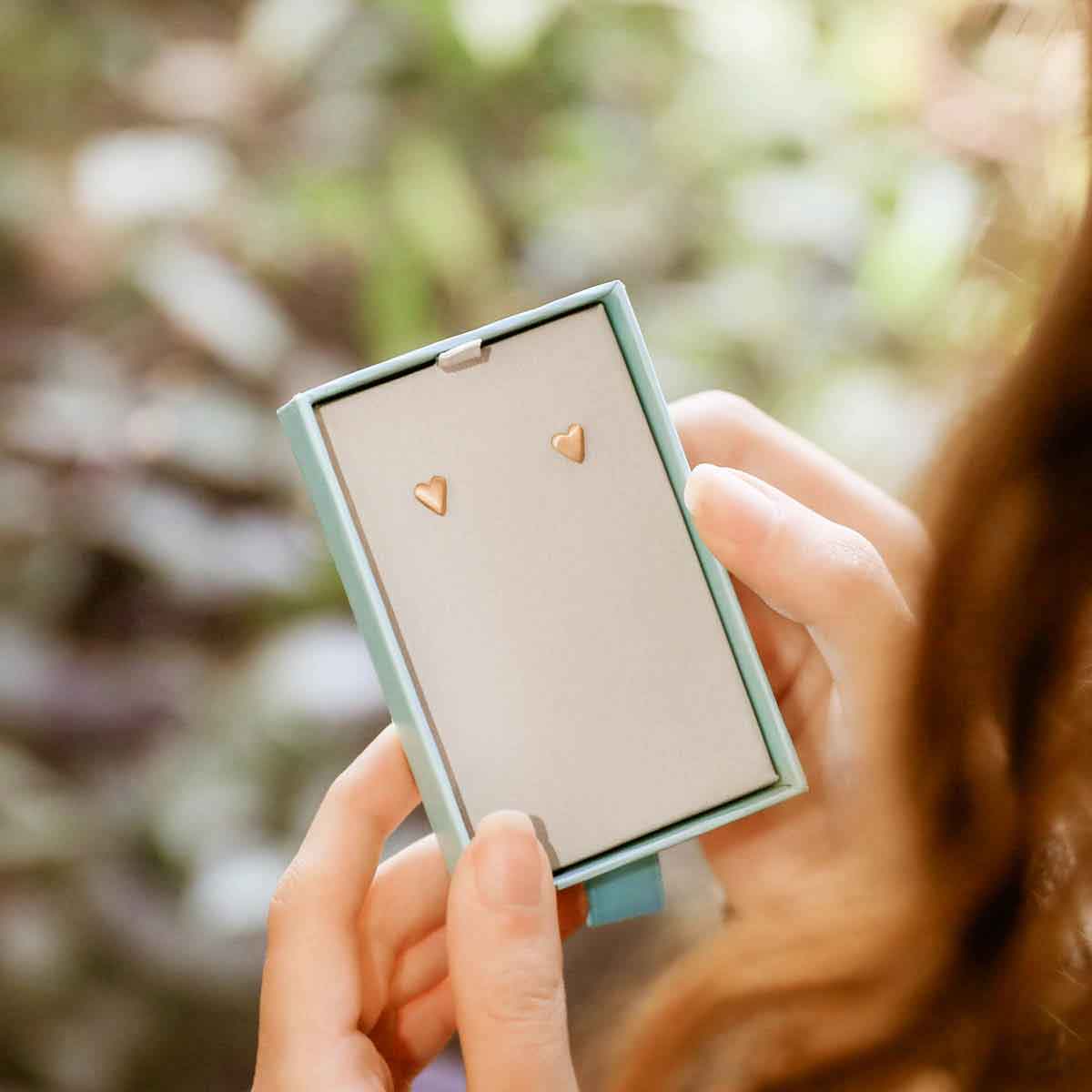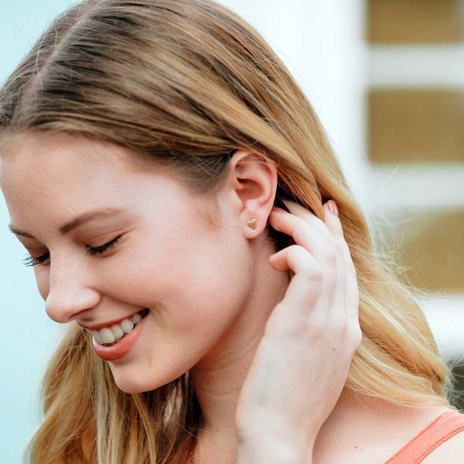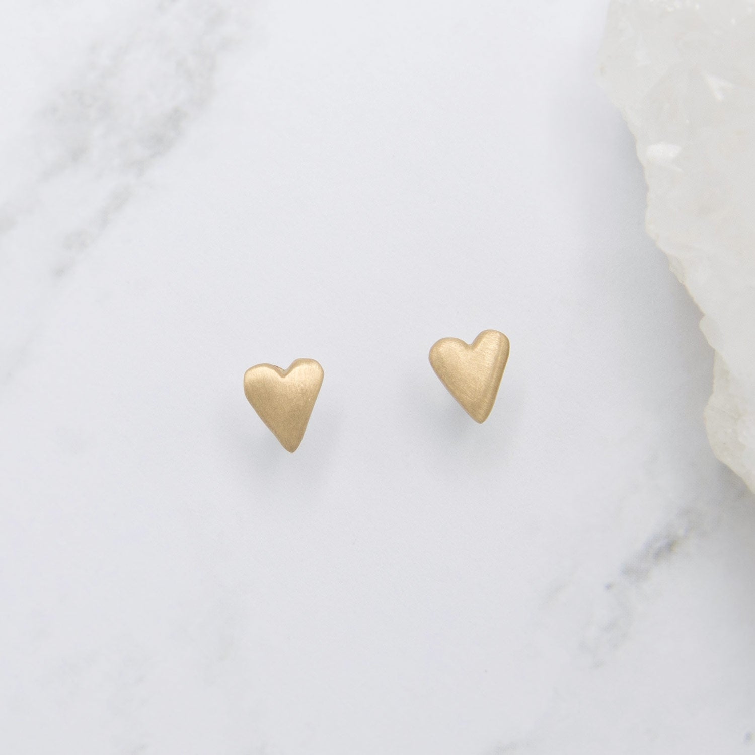 Tiny Heart Stud Earrings (14K Solid Gold)