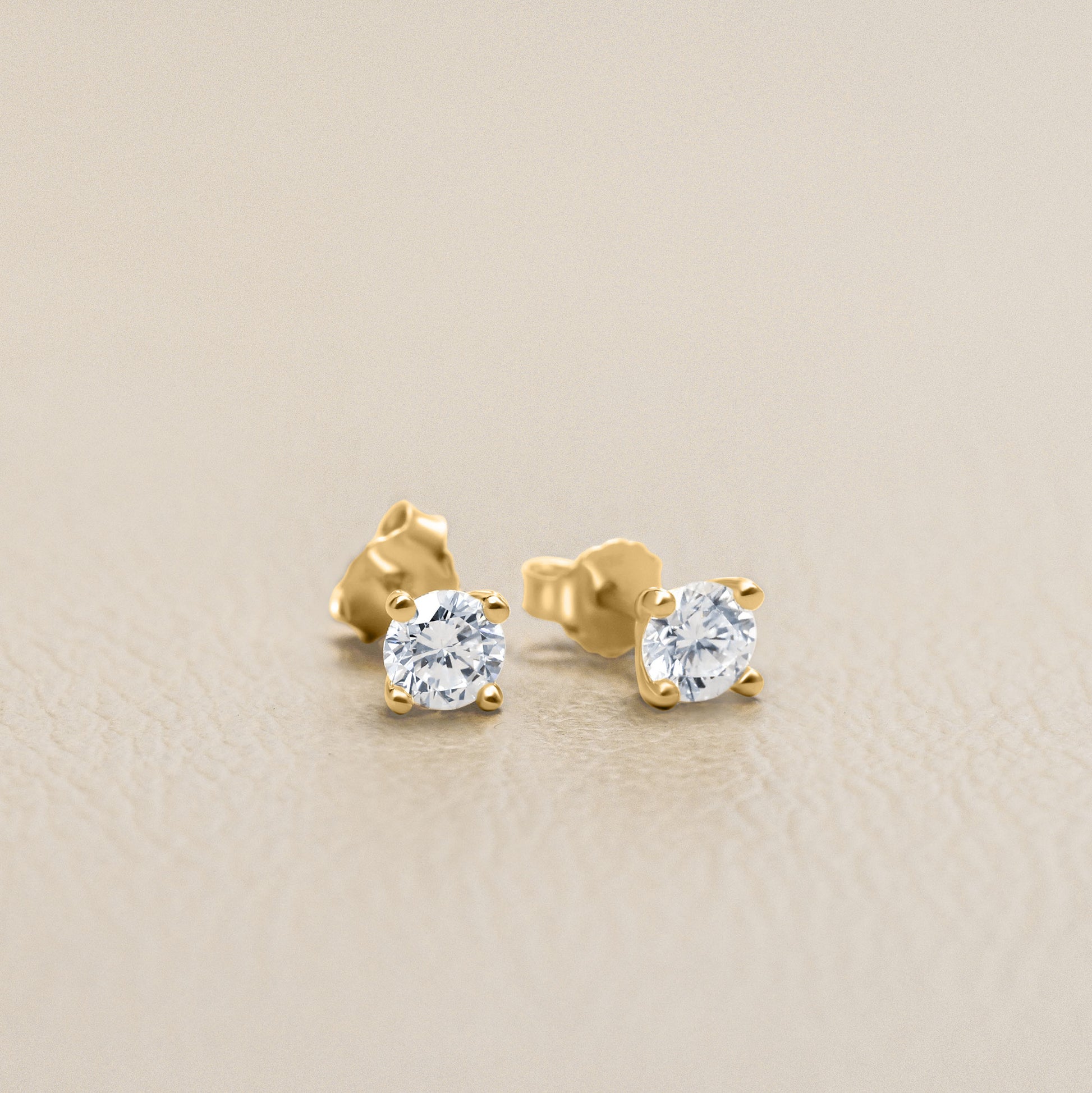 These sweet stud earrings are made of 14k yellow gold and are set with a total of 0.5ct of lab-grown diamonds.
